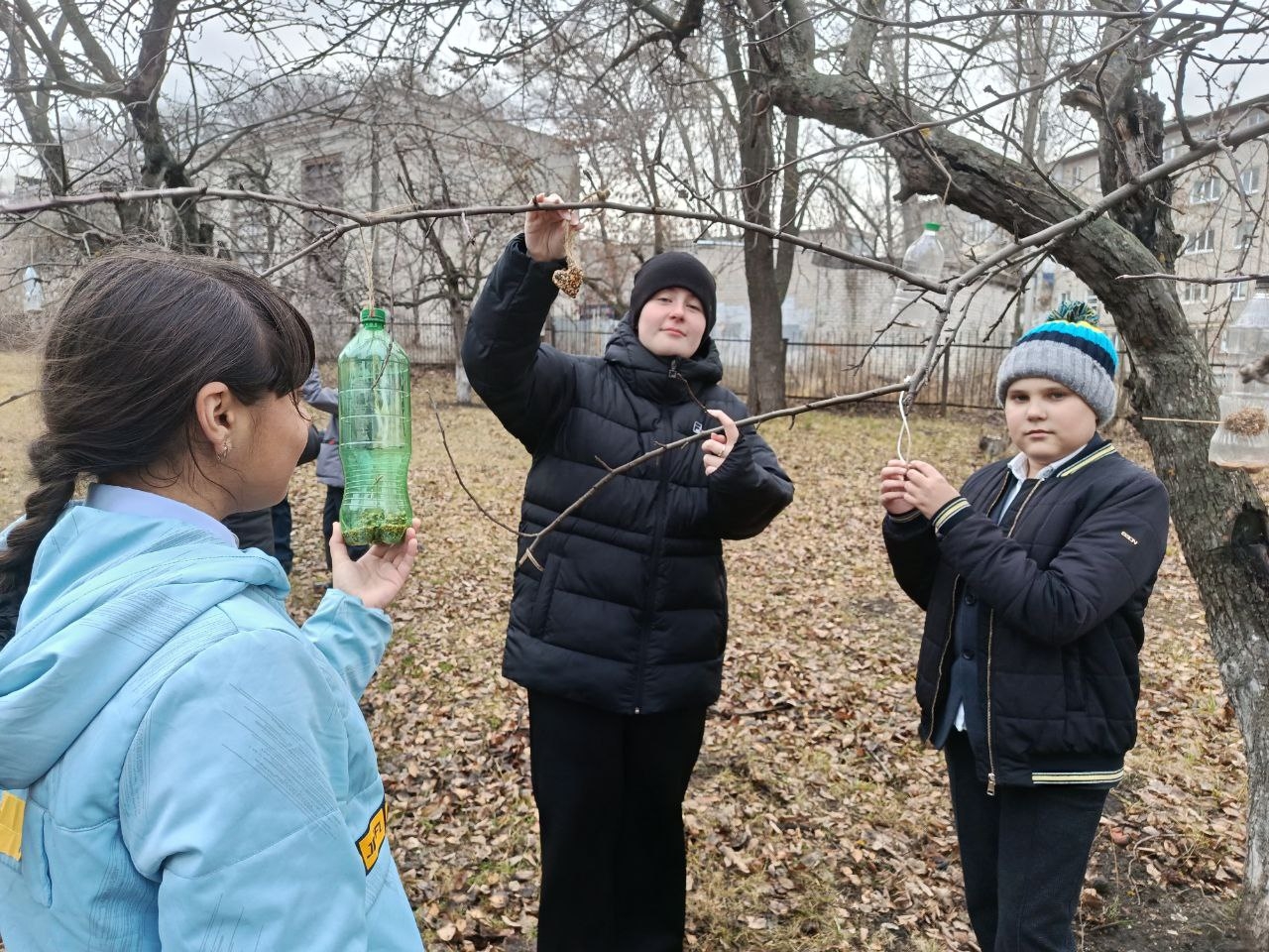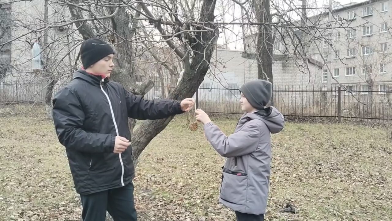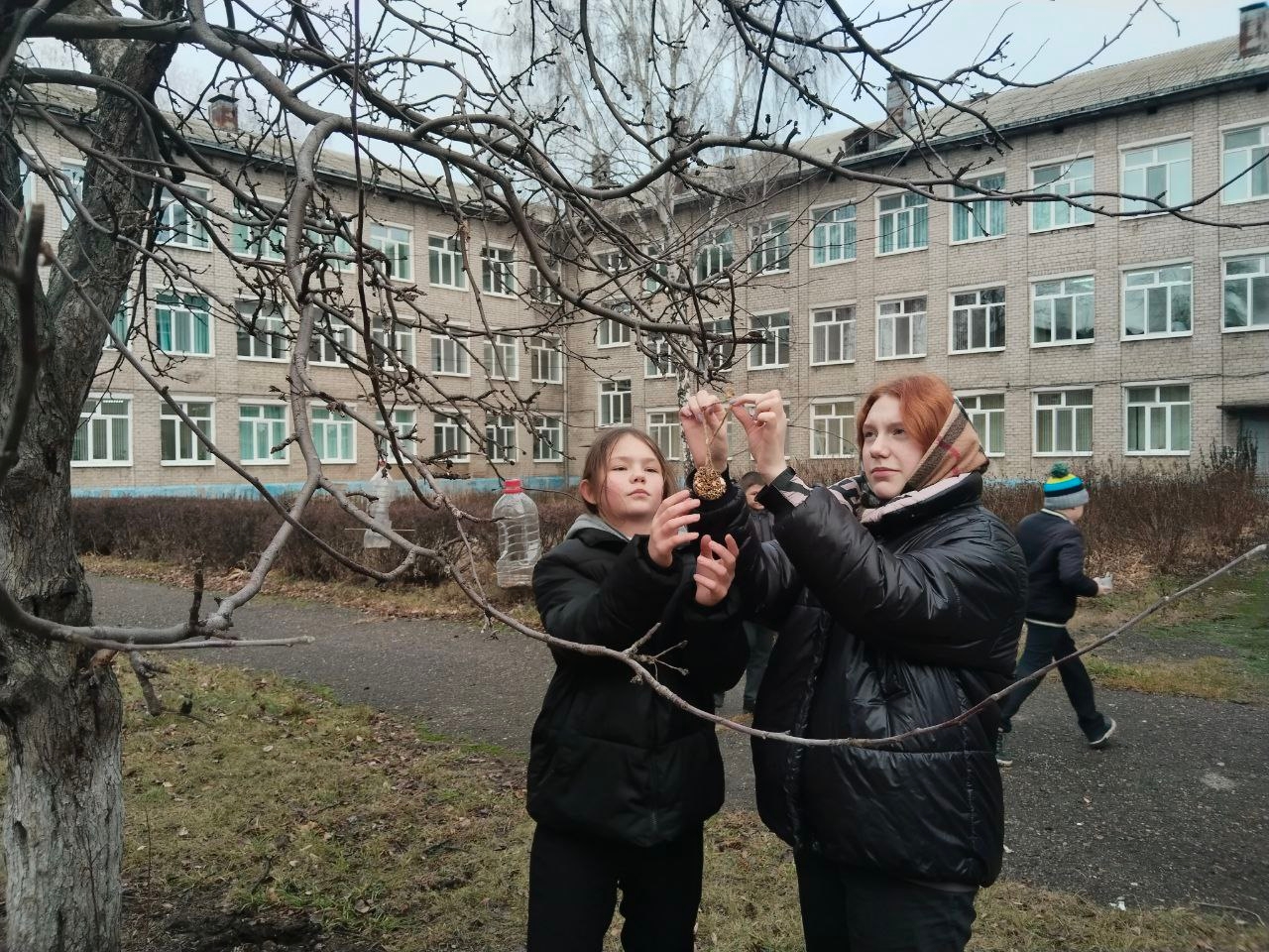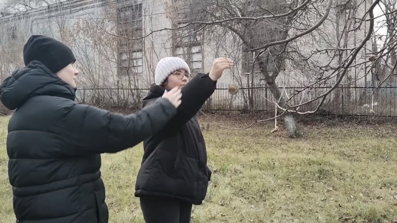 На занятии школьного лесничества «Дубравушка» обучающиеся Центра ЕОиЭВ «Экокампус» Дворца творчества детей и молодёжи, учащиеся 6б класса МБОУ СШ №48 имени Героя России Д.С.Кожемякина под чутким руководством эколидеров Ивановой Ирины (10а), Копачевой Мирославы (9а), Пузова Матвея (10а) и Соловьева Артема (10а) развесили на яблоневых деревьях школьного сада лакомство для зимующих птиц — печенье, сделанное своими руками.