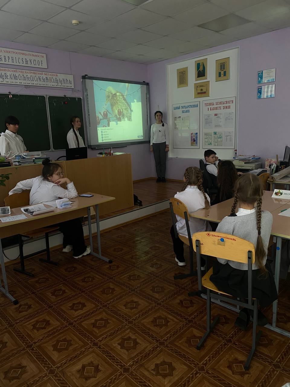 22.12.2025. Обучающиеся школьного лесничества «Дубравушка» Дворца творчества детей и молодёжи, учащиеся 6б класса МБОУ СШ №48 имени Героя России Д.С.Кожемякина, Юннаты Первых провели интерактивную игру «Зимующие птицы моей малой родины» для учащихся 3а и 3б классов нашей школы.