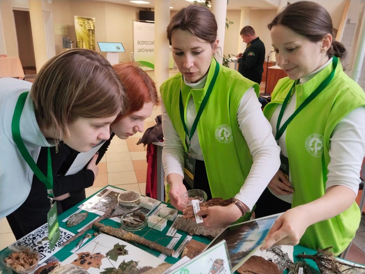 На локации «Рослесозащиты» — «Вредные организмы» мы изучали экспонаты, демонстрирующие, как проявляются болезни у растений, повреждения вредителей.
