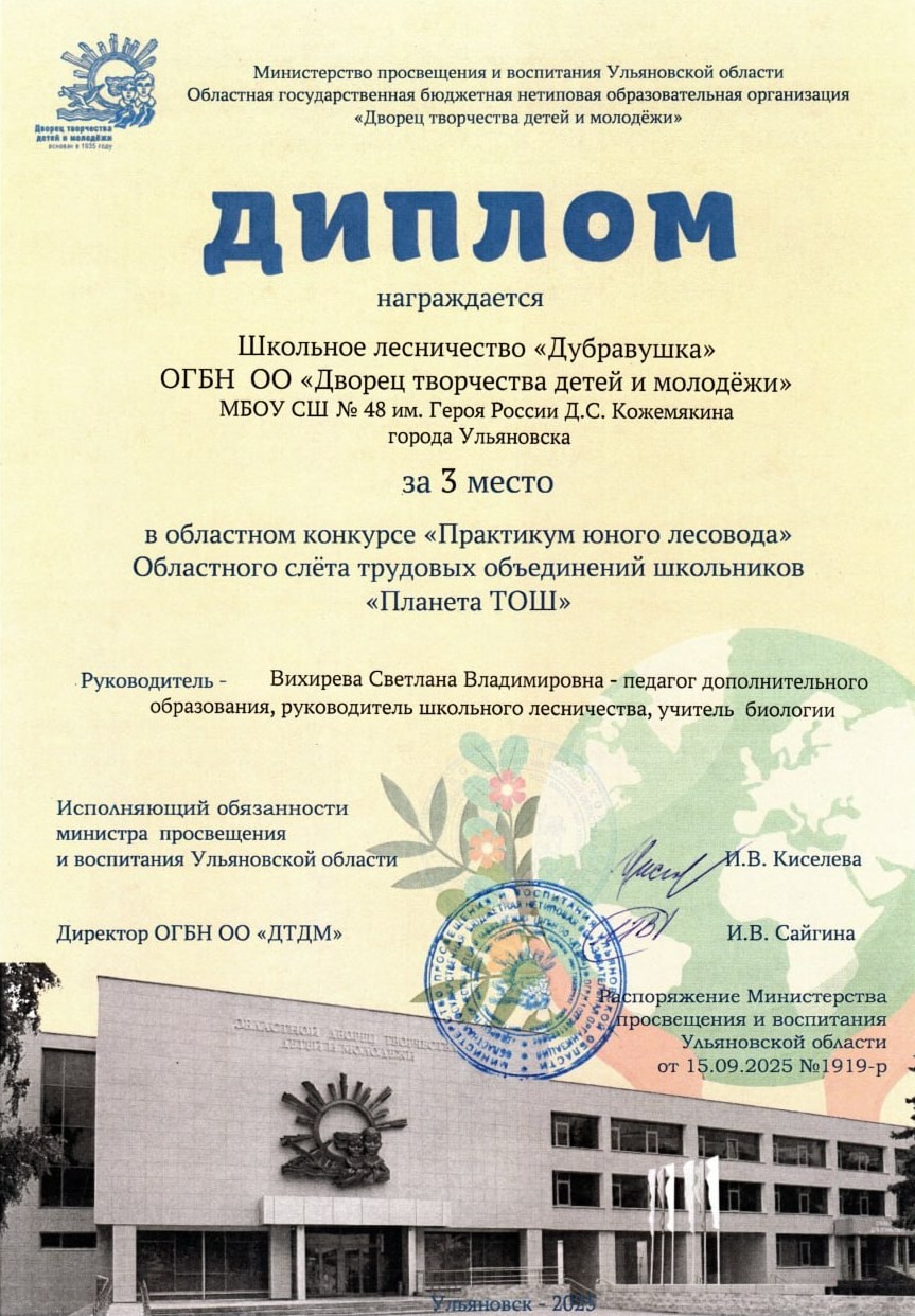 Городское школьное лесничество «Дубравушка» Дворца творчества детей и молодёжи представляла команда учащихся 9а и 10а классов МБОУ СШ №48 имени Героя России Д.С. Кожемякина: