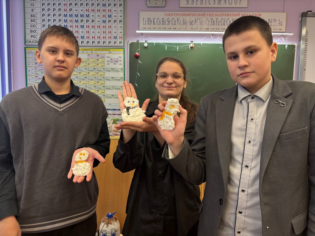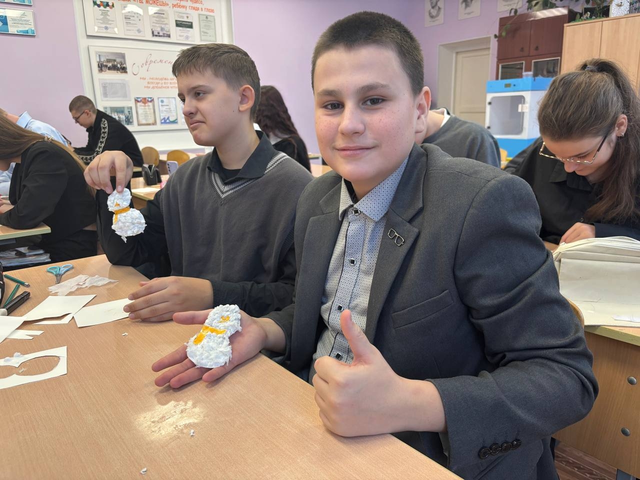 Ребята под руководством Софьи изготовили забавных снеговичков.